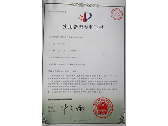 側(cè)分門電梯緊急開門裝置